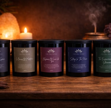Pure Soul Aromas candles are created with care, intention, and quality at their heart. They are made using 100% non-GMO, plant-based soy wax and cotton wicks, offering a clean, long-lasting burn. All candles are vegan and cruelty-free, free of phthalates and parabens, reflecting a conscious, sustainable approach to well-being and the environment.